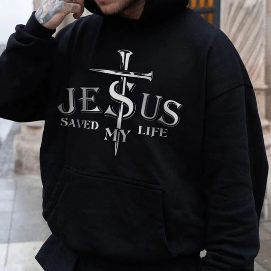 Juses Cross Men's Loose Fit Fleeced Hoodies