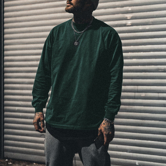 Men's Casual Solid Color Long Sleeved T-shirts-B