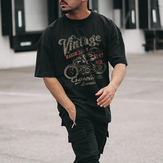 Motorcycle Alphabet Graphic Print Crew Neck Men's T-Shirt