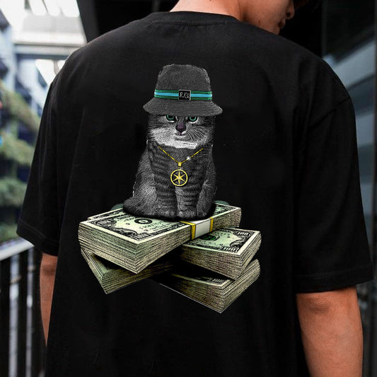 Cat Graphic Print Loose Short Sleeve Men's T-Shirt