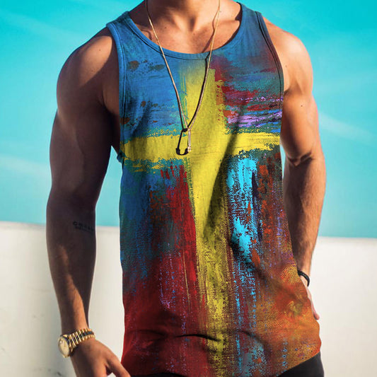 Easter Cross Tie Dye Print Casual Vintage Tank Top