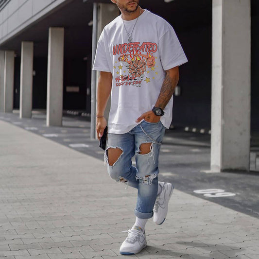 Basketball Graphic Print Casual Loose Men's Short Sleeve T-Shirt