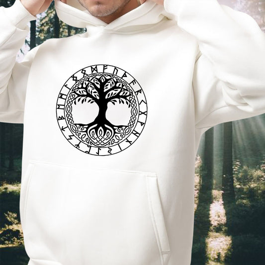Nordic Mythology Yggdrasil Tree Printed Fleece Hoodie