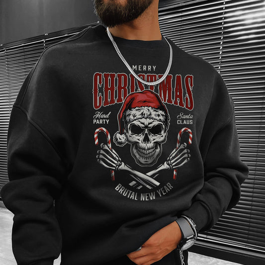 Christmas Skull Printed Men's Casual Loose Fit Sweatshirts