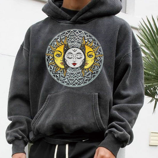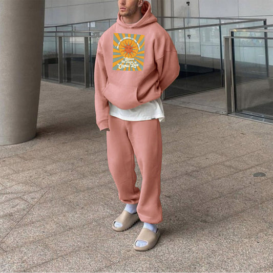 Sun Graphic Print Men's Pink Oversize Hoodie 320g