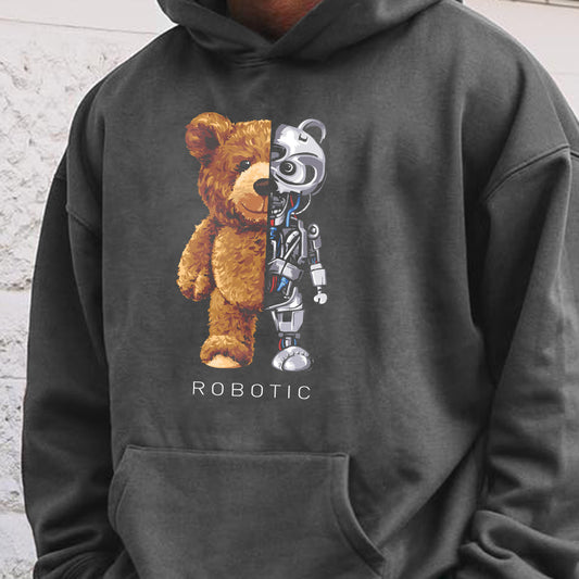 Mechanical Bear Graphic Print Loose Men's Sweatshirt