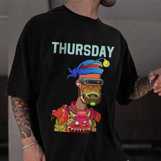 Monday Letters Print Short Sleeve Loose Men's T-Shirt