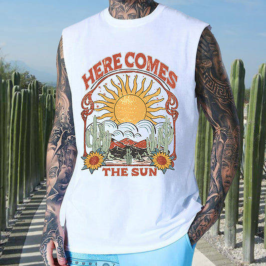 Men's Tropical Desert Cactus and Sun Print Tank Top