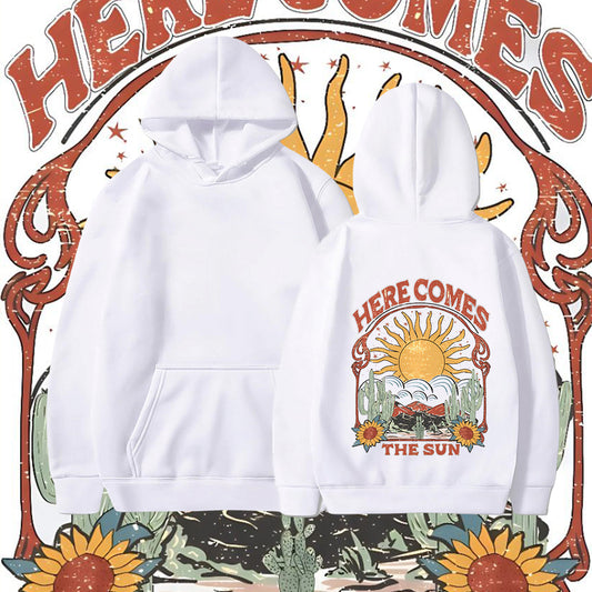 Tropical Desert Cactus and Sun Print Men's Fleeced Hoodie