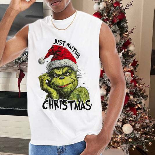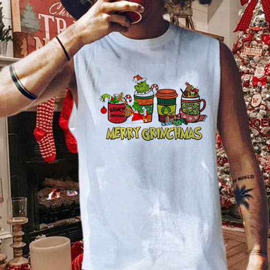 Men's Merry Grinchmas Coffee Print Cotton Tank Top