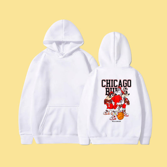 Chicago Basketball Lover Men's Cartoon Print Fleeced Hoodie