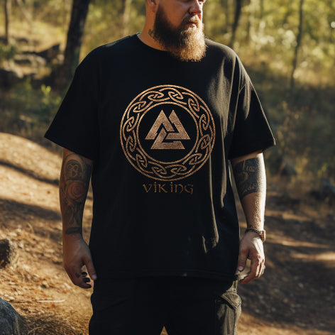 Retro Viking Culture Graphic Short Sleeve T-shirt