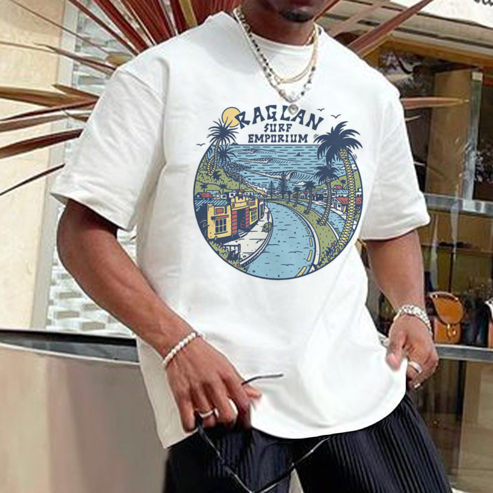 Loose Casual Beach Vacation Graphic Print Crew Neck Men's T-Shirt