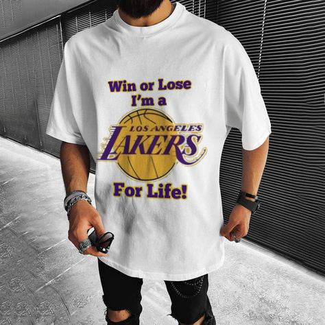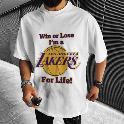 Crew Neck Basic Lakers Letter Graphic Print Casual T-Shirt
